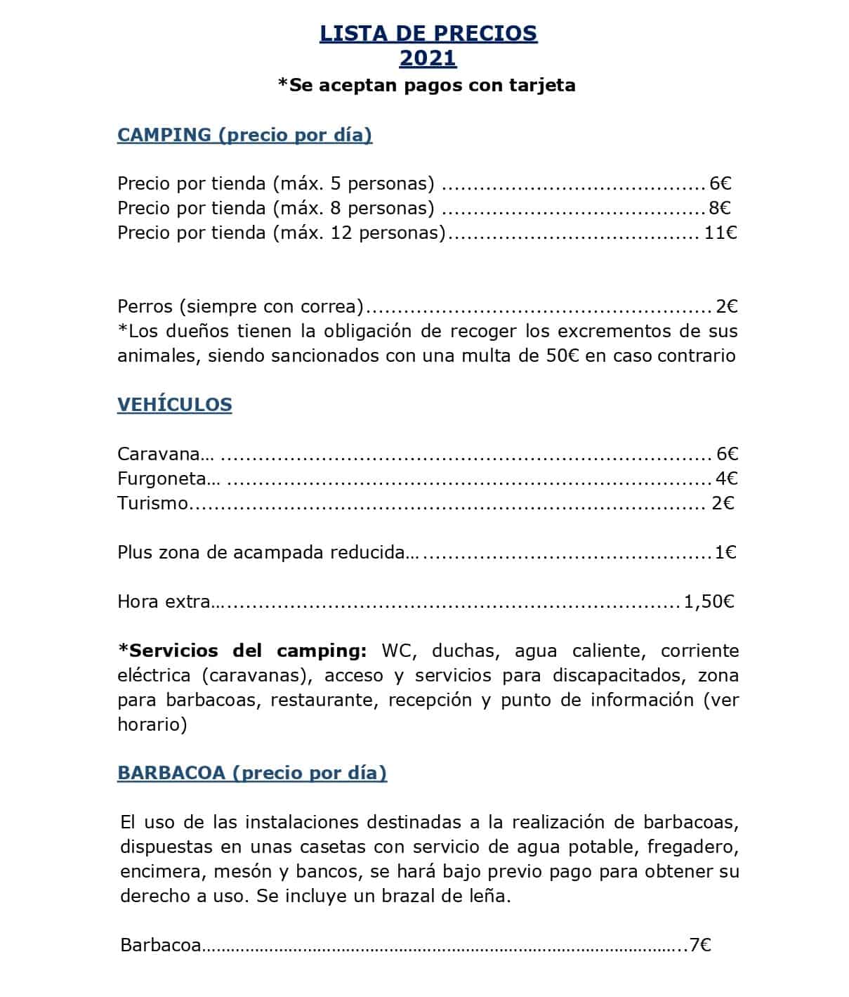 Es un lugar perfecto para realizar actividades de ocio y naturaleza, disfrutar de la zona de acampada y del área de caravanas, disponiendo de los servicios básicos para este tipo de instalaciones, como aseos y servicios públicos (también para personas con discapacidad), zona de gestión y administración, puntos de agua, desagües, agua y electricidad para las caravanas, papeleras y contenedores.